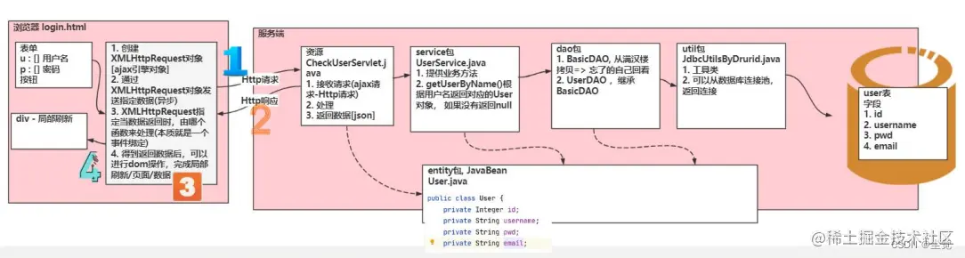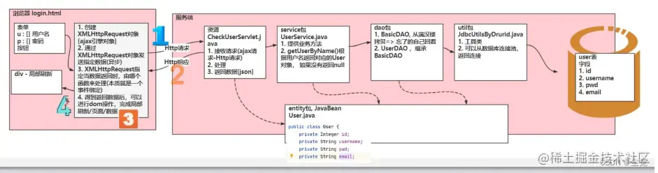 2) 点击验证用户名, 服务端验证该用户名是否已经占用了, 如果该用户已经占用, 以 json格式返回该用户信息