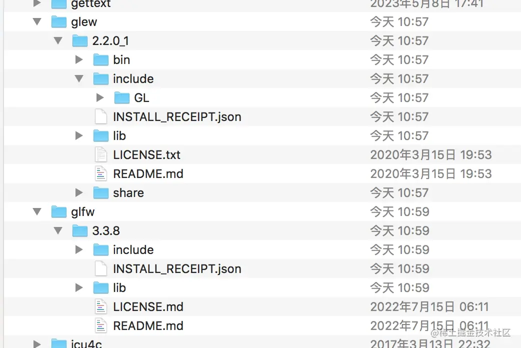 - 两个库的安装路径在:usr/local/glew 和 usr/local/glfw