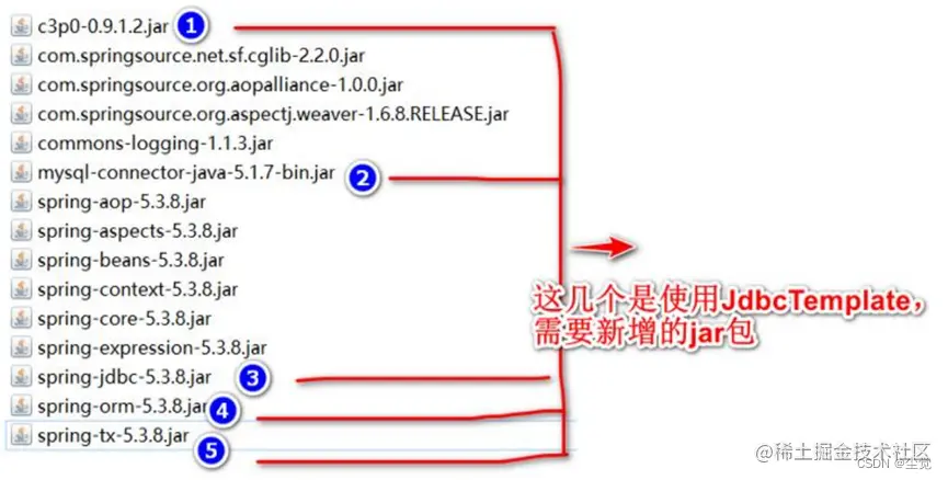 2. JdbcTemplate 是 Spring 提供的访问数据库的技术。可以将 JDBC 的常用操作封装为模板方法。[JdbcTemplate 类图].