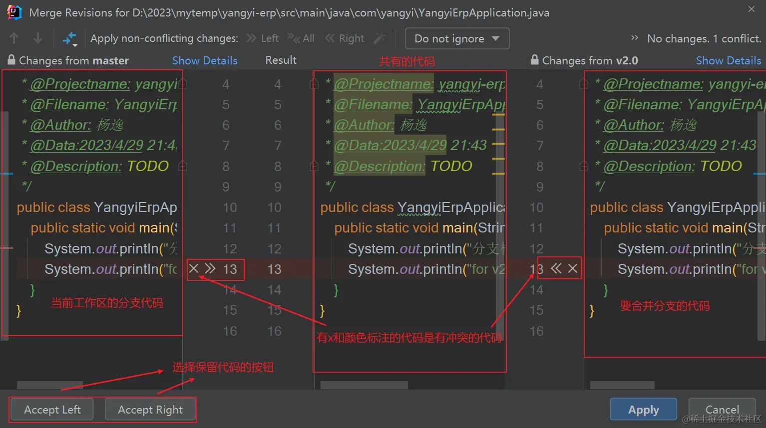 # 后者的所有变化都将被前者抵消,并且应用到当前分支