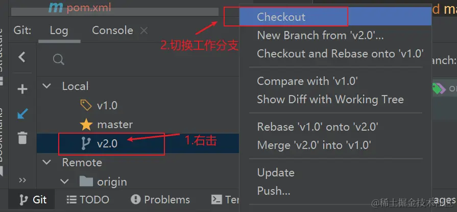 git checkout命令,也可以使用图形化操作