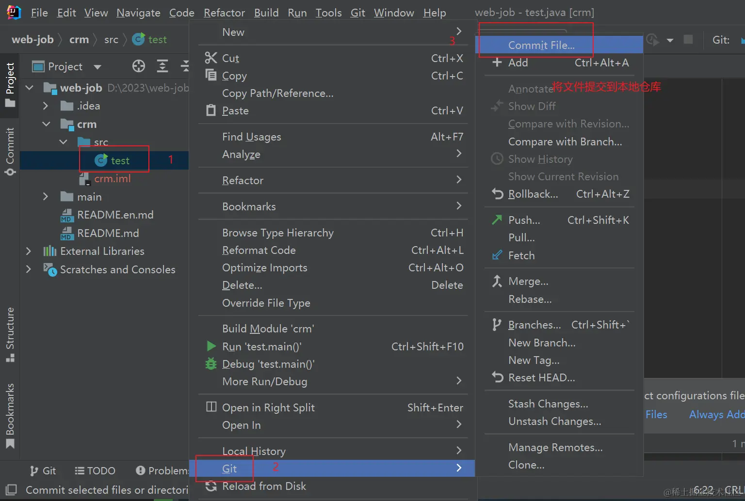 - 将新建文件提交到本地仓库