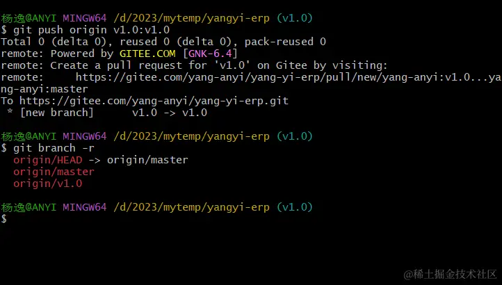推送分支到远程仓库