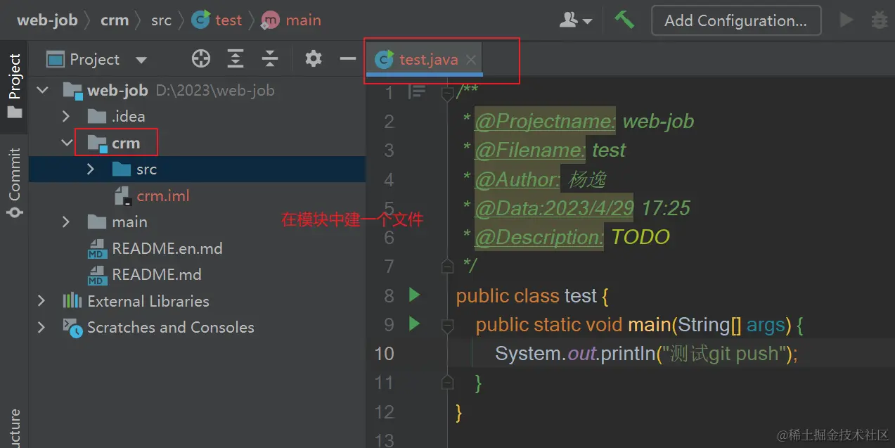 - 在模块中新建一个文件