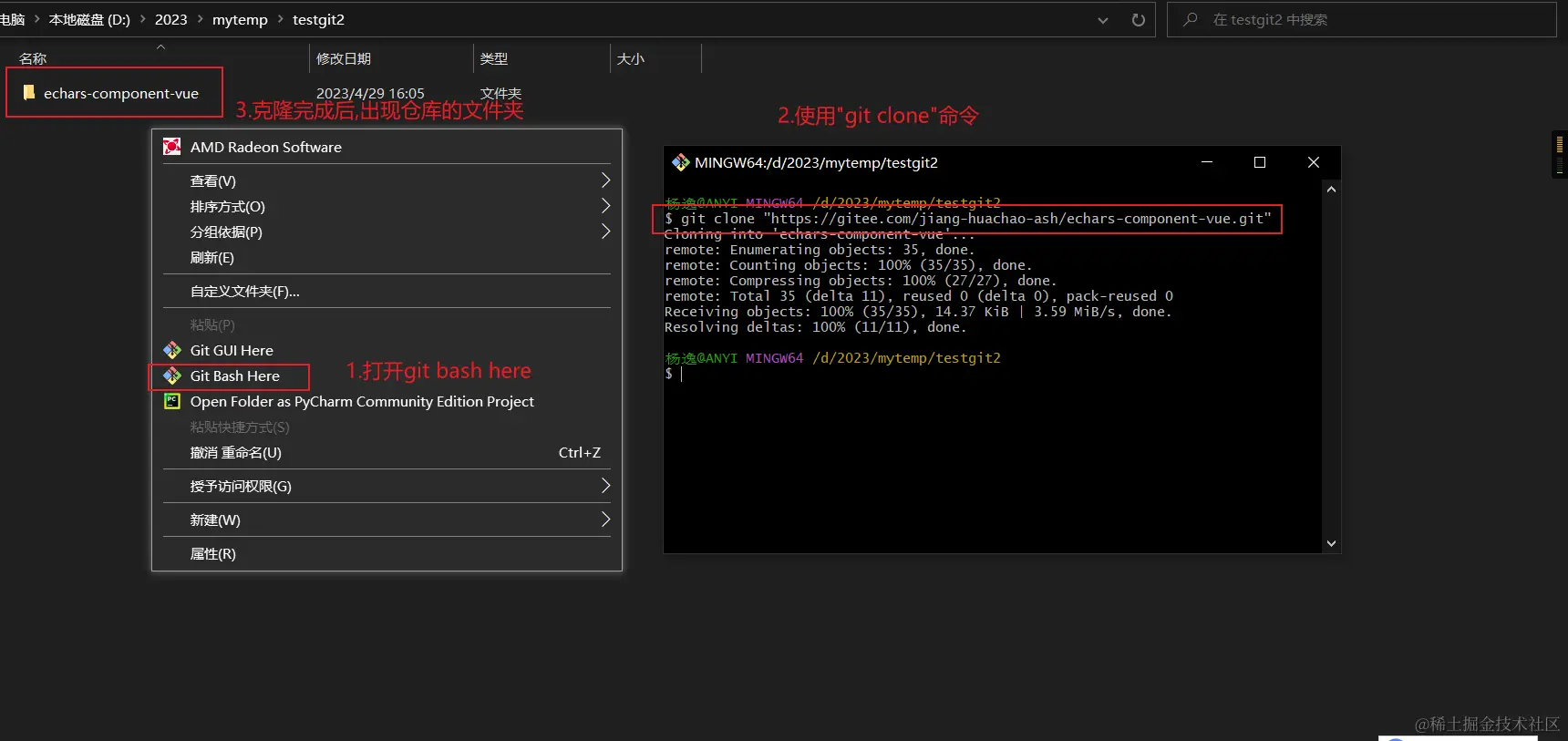 git clone "远程仓库地址"初始化仓库 - 克隆完成后,目录下会出现被克隆仓库的所有文件