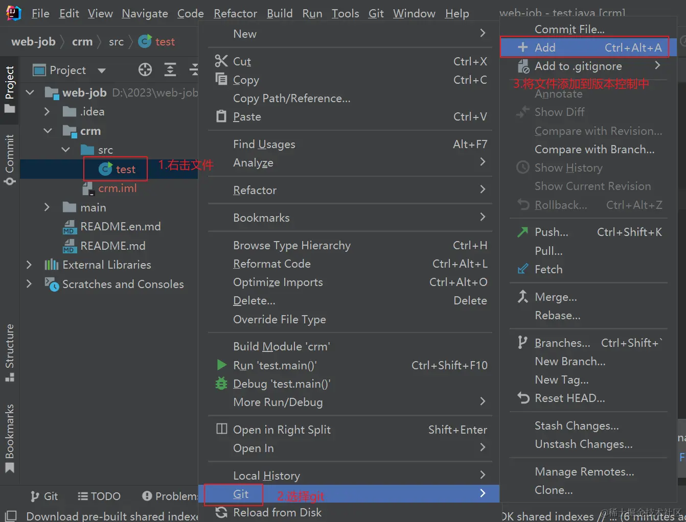 - 将新建文件添加到版本控制中
