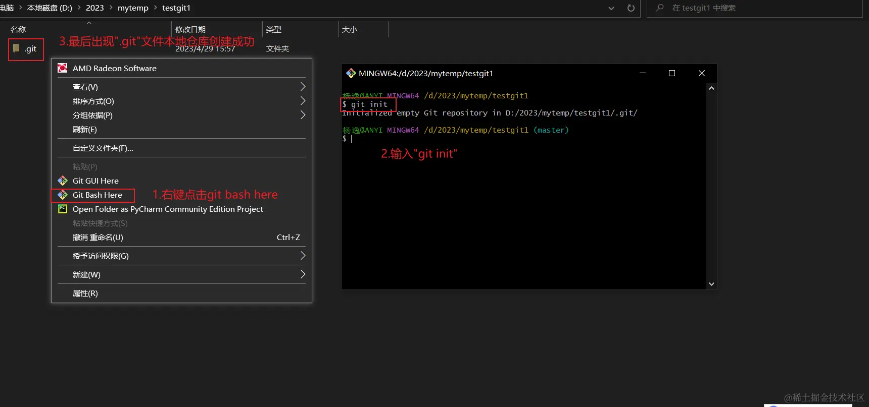 git init初始化仓库 - 创建完成后就会出现一个