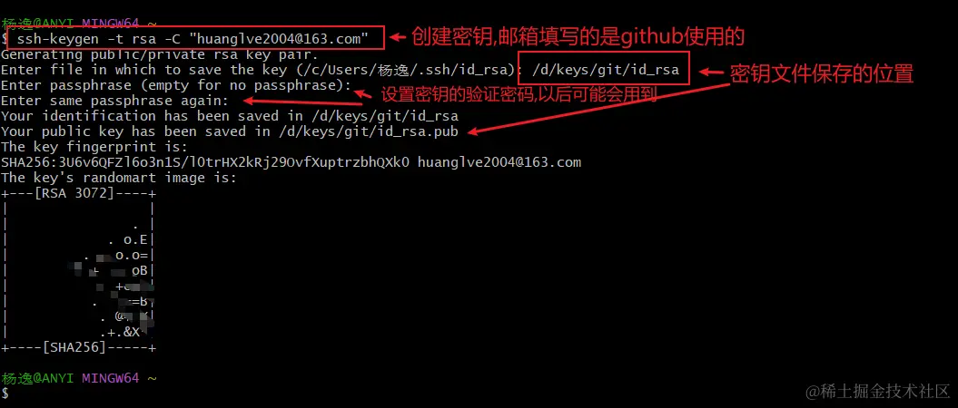 shh-keygen -t rsa -C "你的邮箱"命令创建密钥 - 使用