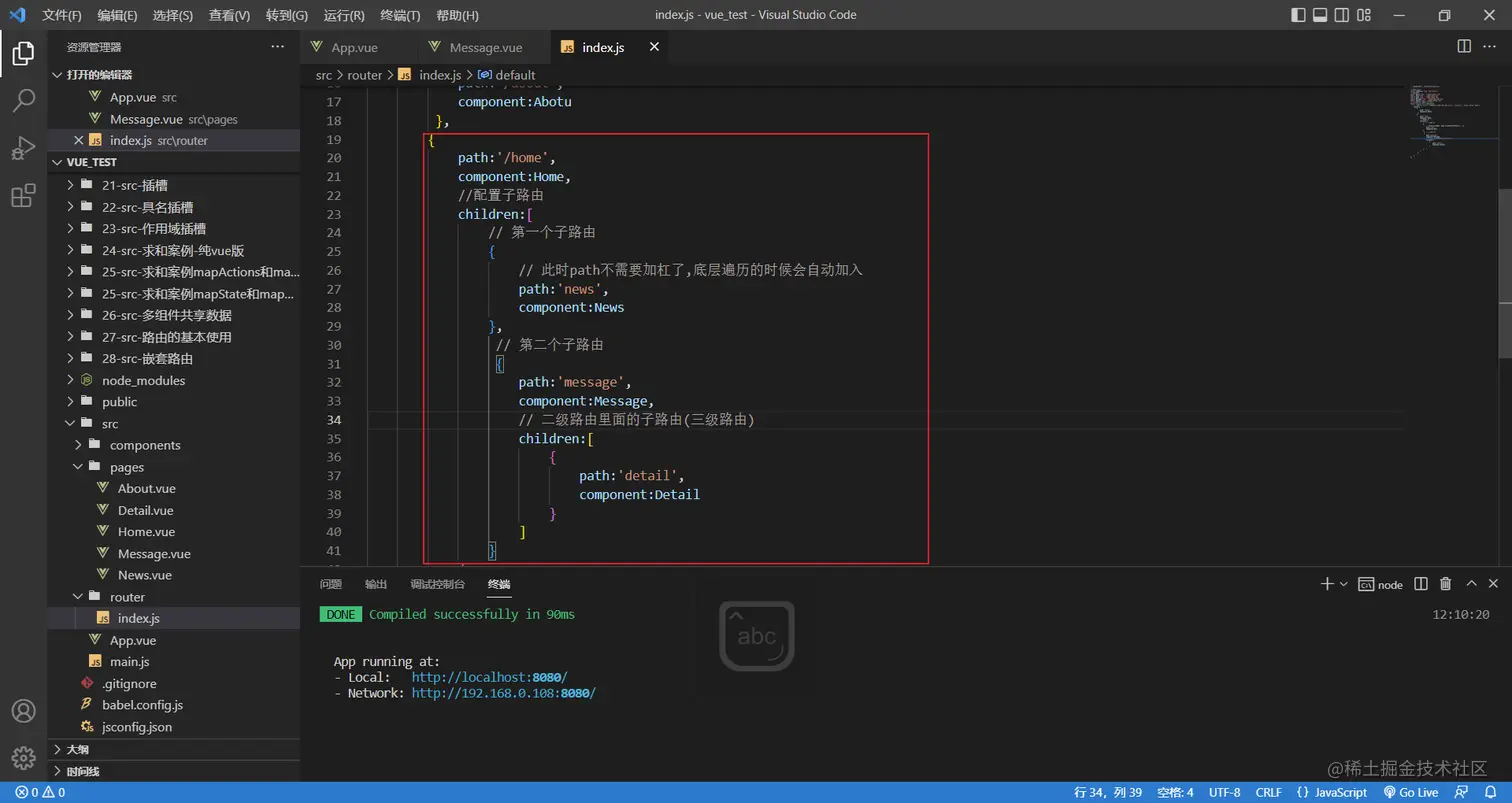 这里使用三级路由以及展示路由视图