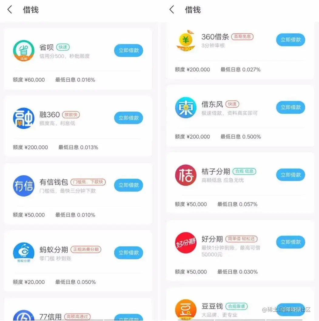 像上图这种,360对接了很多其他渠道的贷款产品,根据用户的特点(数据),给用户展示适合他的贷款产品,称为贷款超市。像超市一样,用户可以自主选择合适自己的贷款产品。