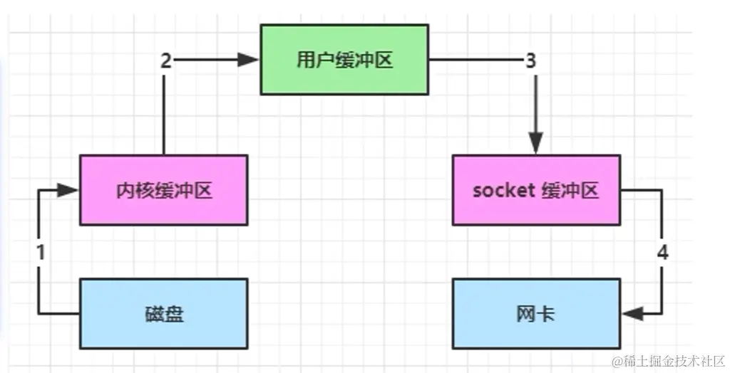 传统 IO 将一个文件通过 socket 写出流程如下: