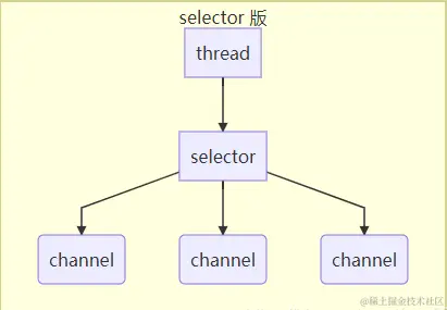 可以被称为多路复用器(可以对多个 Channe 可读写事件监控),可以把多个 channel 注册到一个 selector 上,每个线程可以通过 selector 管理多个 channel,当其中的一个 channel 发生了读写事件,selector 就会通知线程去处理这个事件,避免了一个客户端连接占用一个线程的情况出现,线程的利用率得到提升。