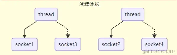 用线程池合理控制线程总数,一个线程连接建立后,期间所有的 read、write 等处理完之后再处理下一个 socket 请求,依次循环处理,所以只适用于短连接场景。
