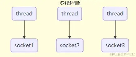 一个客户端建立连接,代码的角度就是创建一个 socket,读写操作就是通过 socket 来完成,所以一个客户端来了就是给他开一个线程,如果多个客户端就是要开多个线程,每个线程管一个客户端连接