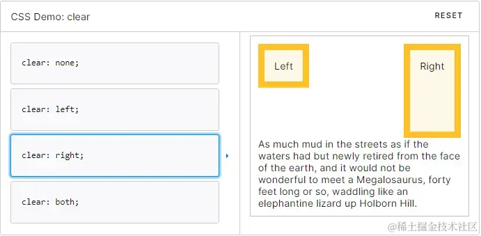 right 元素被向下移动以清除右浮动。