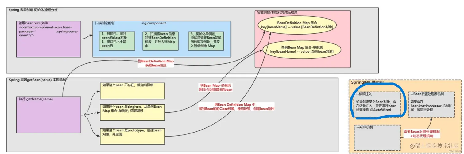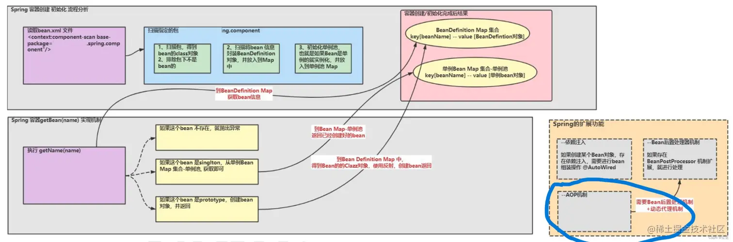 Spring的初始化 -IOC容器+-依赖注入-+BeanPostProcessor 机制-+AOP实现