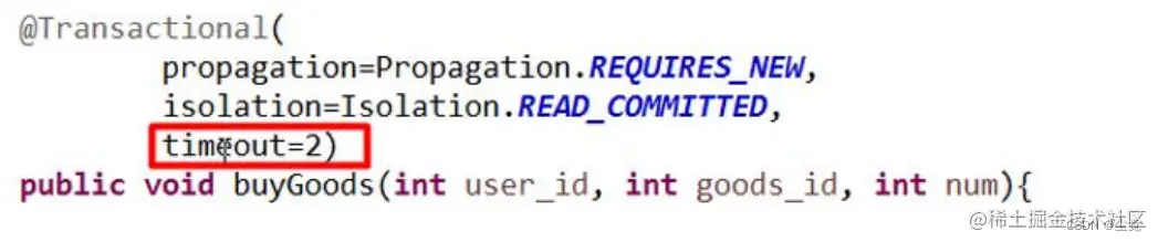 @Transactional(timeout = 2)