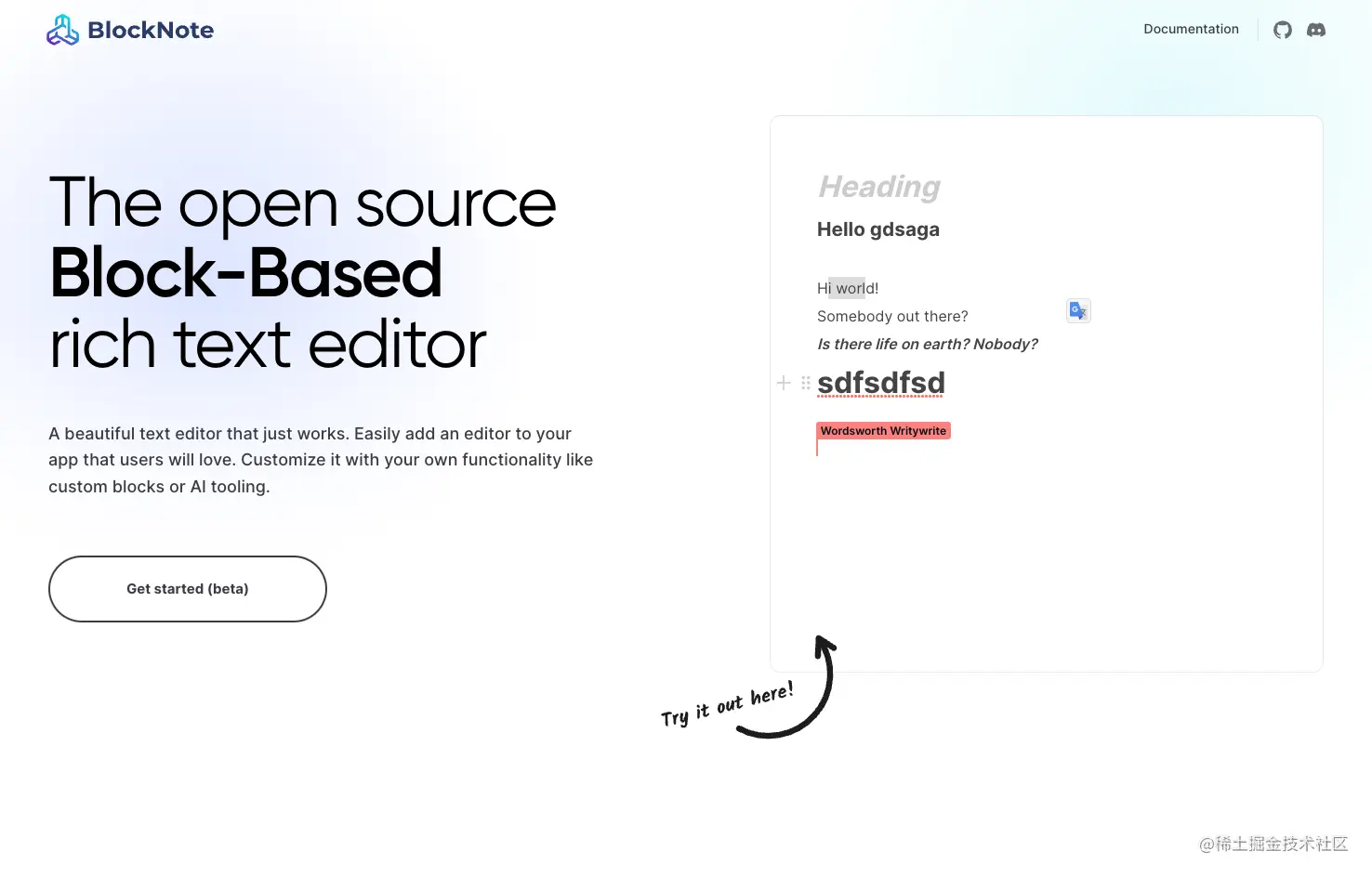 一个基于 React 的 Notion 风格富文本编辑器,借助 BlockNote,开发人员可以轻松地为他们的应用程序添加下一代文本编辑体验,其用户体验与行业领导者如 Notion 或 Coda 不相上下。不过目前该项目还处在 beta 阶段,值得持续关注。