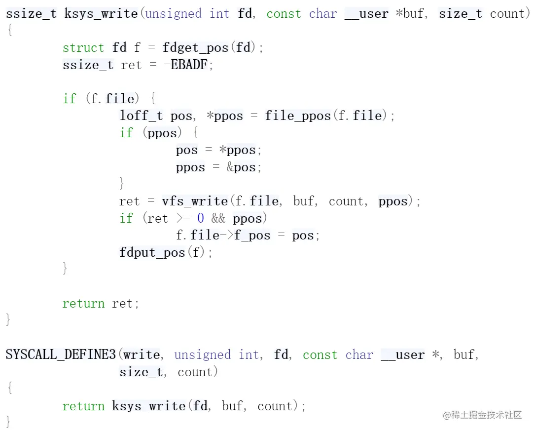 这个方法中会获取fd,然后再通过vfs_write写入,顺着调用链一路找到了下面这个write方法