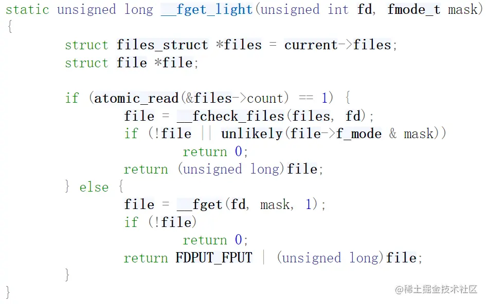 回头看ksys_write方法的第一行,打开了一个文件描述符,其中调用了__fget_light方法