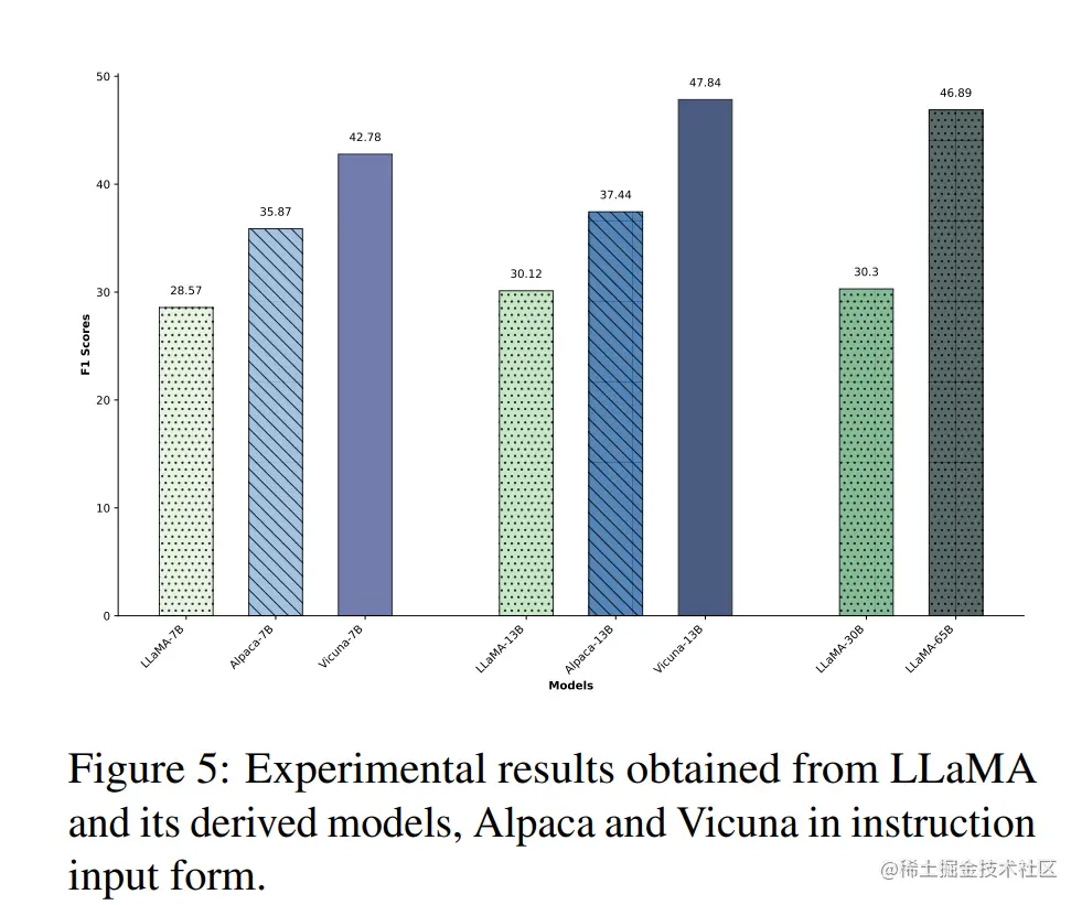 可以看到 GPT-4 依然高居榜首,但是距离人类尚有约 10% 的差距,即表明现在即使是 GPT-4 也仍然面临着自知能力不够强的大问题。而整个 LLaMA 系列的模型自知能力如下所示,距离 GPT 系列模型尚有差距:
