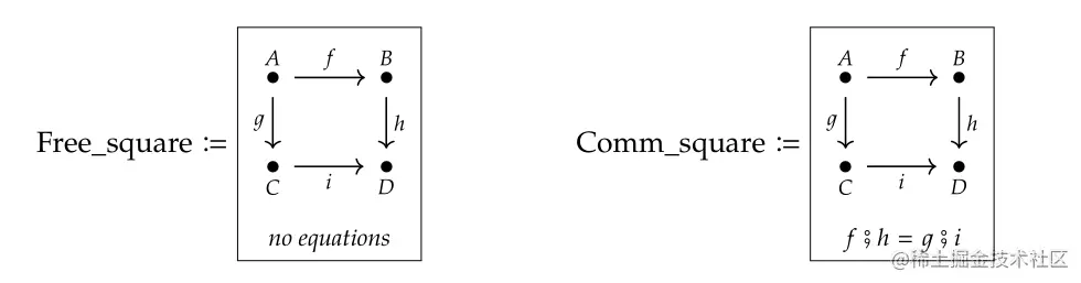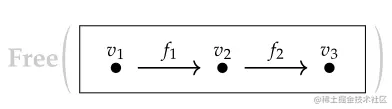 这里的所谓Free指的是我们没有添加任何新的约束条件,仅仅是从补足范畴论定义的需要出发向图中补充了最少量的元素。而一个不Free的构造方式是向图中引入约束条件:规定两条连接同样起点和钟点的路径是等价的。