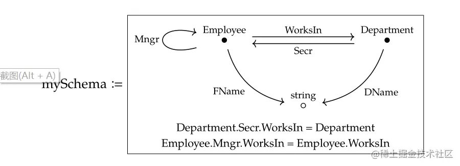 在easySchema这个范畴上增加equation约束条件之后就可以得到新的范畴 mySchema