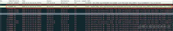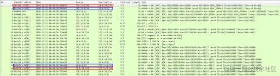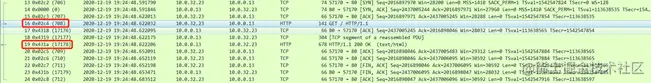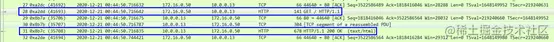 实际上这与service的实现机制有关。在集群中创建service后,集群网络组件会在各个节点上都选取一个随机端口进行监听,然后在节点的iptables中配置转发规则,凡是在节点内请求service IP均转发至该随机端口,然后由集群网络组件进行处理。所以在节点内访问service时,实际访问的是节点上的某个端口。如果将抓包导出为cap文件,可以看到请求的目的IP仍然是10.0.58.158,如图所示: