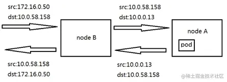 是的,经过我们的测试验证,这样确实可以使客户端成功请求服务。但是别忘了,用户还有一个需求是客户端可以直接访问后端pod,如果pod回包返回给node B,那么客户端请求pod时的数据通路是怎样的呢?