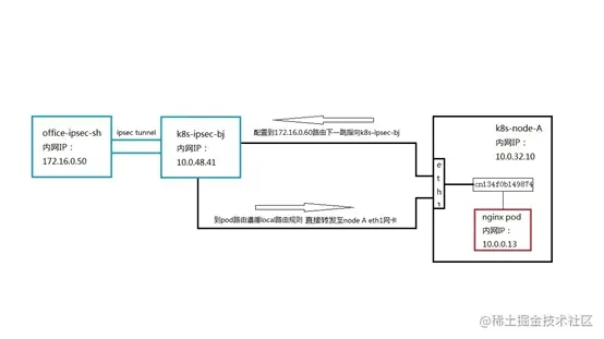 看到这里,机智的童鞋可能已经想到,那修改eth1所属的pod子网路由,让去往172.16.0.50的数据包下一跳不发送到k8s-ipsec-bj,而是返回给k8s-node-B,不就可以让回包沿着来路原路返回,不会被丢弃吗?