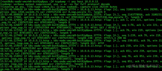 可以看到这次确实抓到了10.0.0.13和172.16.0.50交互的数据包,为了便于分析,我们使用命令tcpdump -i any host 10.0.0.13 -w /tmp/dst-node-pod.cap将包输出为cap文件。