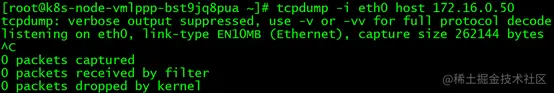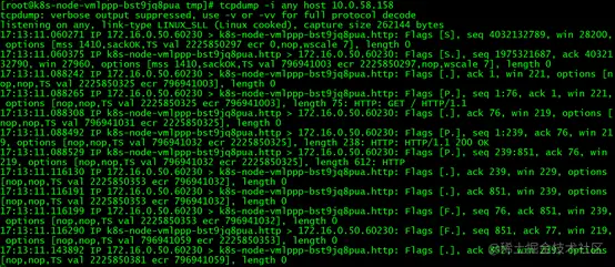 首先探究疑问1场景,我们在k8s-node-A上执行命令抓取与上海云主机172.16.0.50的包,命令如下: