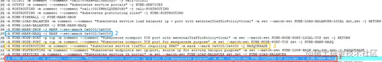 可以看到系统创建了近千条iptables规则,大多数与k8s有关。我们重点关注上图中的nat类型规则,发现了有如下几条引起了我们的注意: