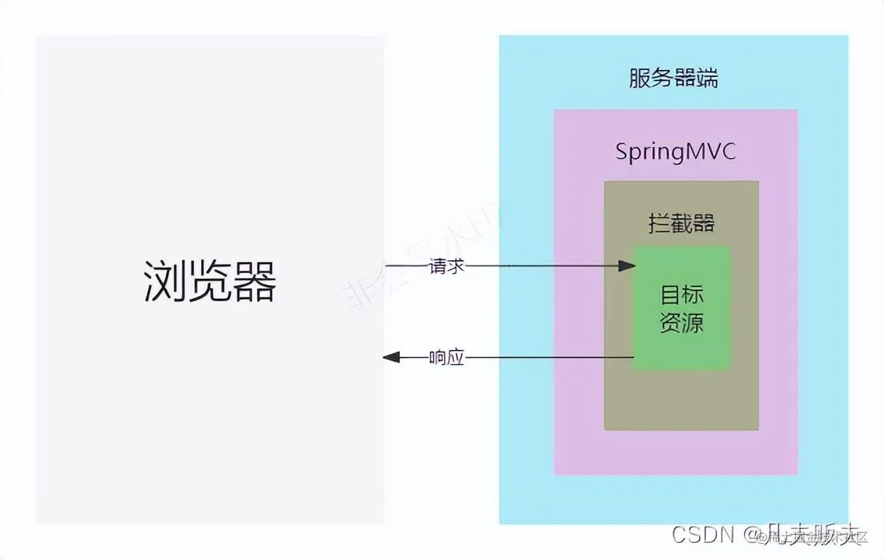 - 拦截器依赖于springMVC,可以在SpringMVC项目中使用,而SpringMVC的核心是DispatcherServlet,而DispatcherServlet又属于Servlet的子类,因此作用域和过滤器类似;