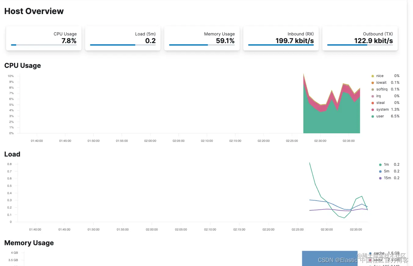 Metricbeat 还配置为通过 /var/run/docker.sock 监控容器的主机。检查 Elastic 可观察性允许你查看来自主机的指标。