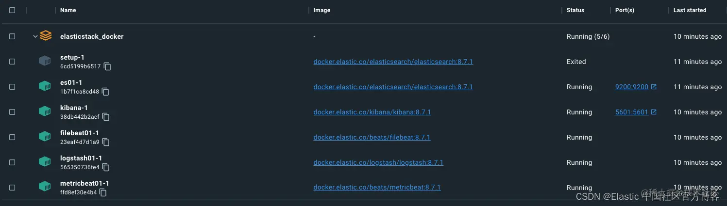 我们对这些 Docker 容器的关注主要是 Elasticsearch 和 Kibana。 但是,我们将利用 Metricbeat 为我们提供一些集群洞察力,并利用 Filebeat 和 Logstash 提供一些摄取基础知识。