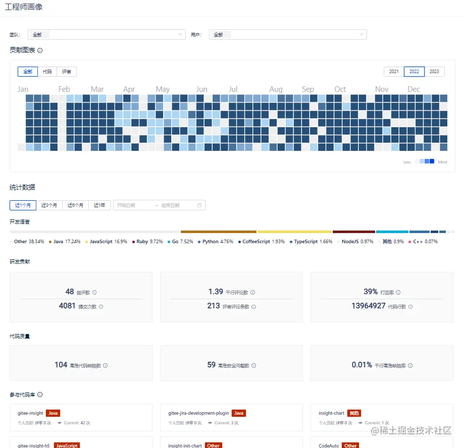 目前,Gitee Insight 不仅成为企业软件研发全生命周期管理的一部分,其功能实践也已崭露出极大的优越性,主要包括以下几点: