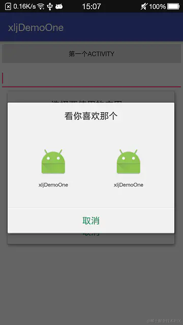 3.如果有多个Activity满足了条件,那么系统就会默认的弹出提示框,效果如下: