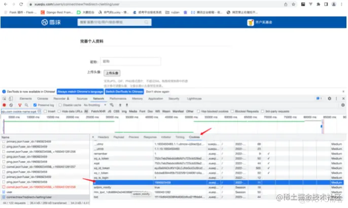 - 实例(爬取雪球网)在网络中找到当前请求的网址 点击cookies 将当前的k,value复制到代码中