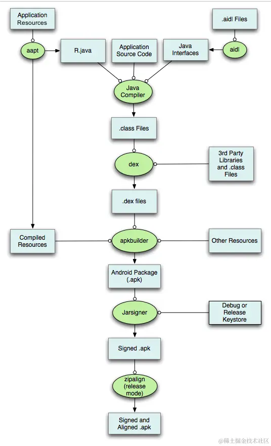 Other Resources:比如assets,lib和res一些图片和XML文件等等,这些资源就不会经过相关工具处理,直接放入apk包中。