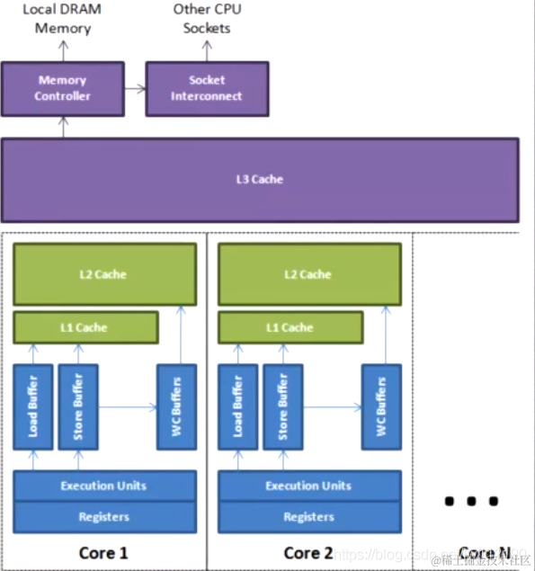 为了提高写效率: CPU在写入L1时,同时用WC写入L2