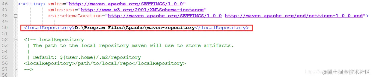 <localRepository>D:\Program Files\Apache\maven-repository</localRepository>