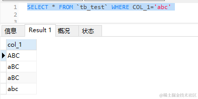 mysql where子句 区分 大小写 天天代码码天天 2023-06-05 51 阅读1分钟 解决办法 使用binary关键字,此时就能区分大小写了 SELECT * FROM `tb_test` WHERE BINARY COL_1='abc'