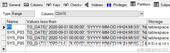 partition p1 values less than (to_date('2020-08-01', 'yyyy-mm-dd'))