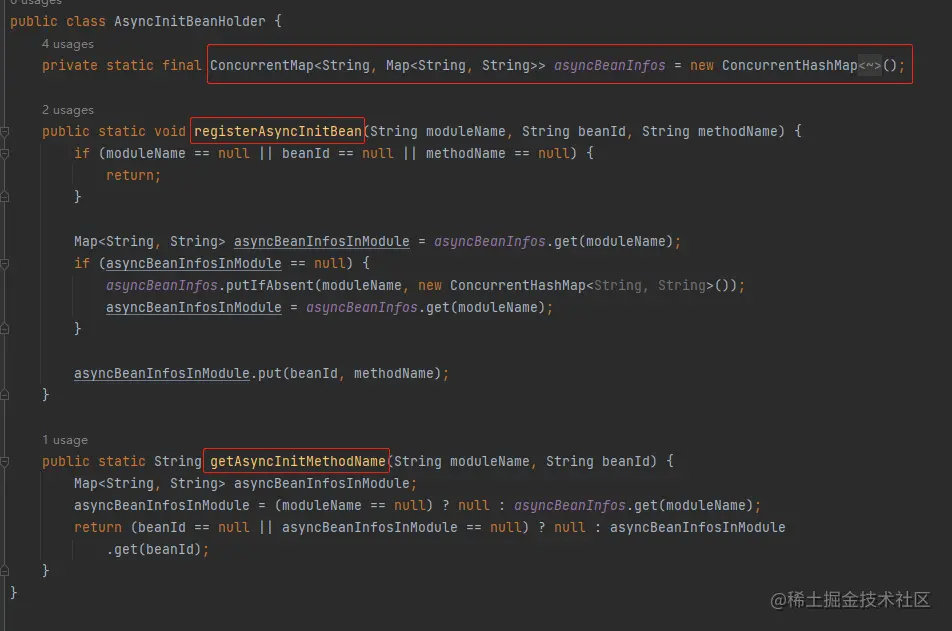 这样处理完成之后,AsyncInitBeanFactoryPostProcessor 类不报错了,接着看这个类在哪里使用到了。