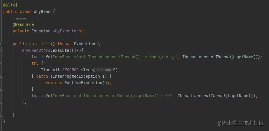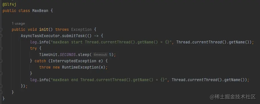 恭喜你,你项目中的 Bean 也可以异步执行 init 方法了,使用方法就像这样式儿的: