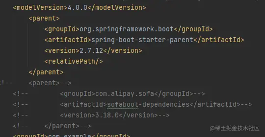 这里的 ${sofa.boot.version} 指定具体的 SOFABoot 版本,我这里使用的是最新的 3.18.0 版本。