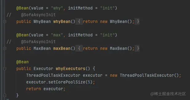 先注入一个自定义线程池,同时注释掉 @SofaAsyncInit 注解: