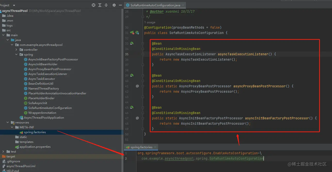 除了这些类之外,你还会把这个 spring.factories 搬运过来,在项目启动时把这几个相关的类加载进去:
