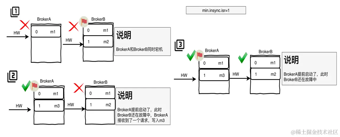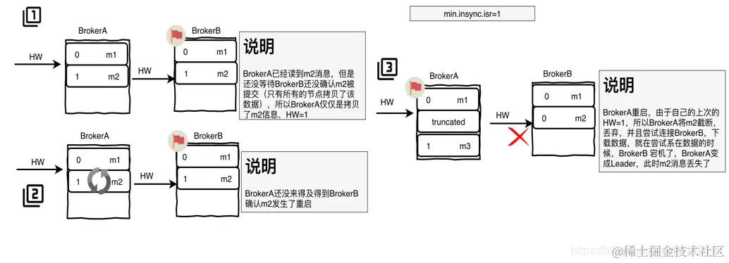 ①:High Watermark Truncation followed by Immediate Leader Election(数据丢失)